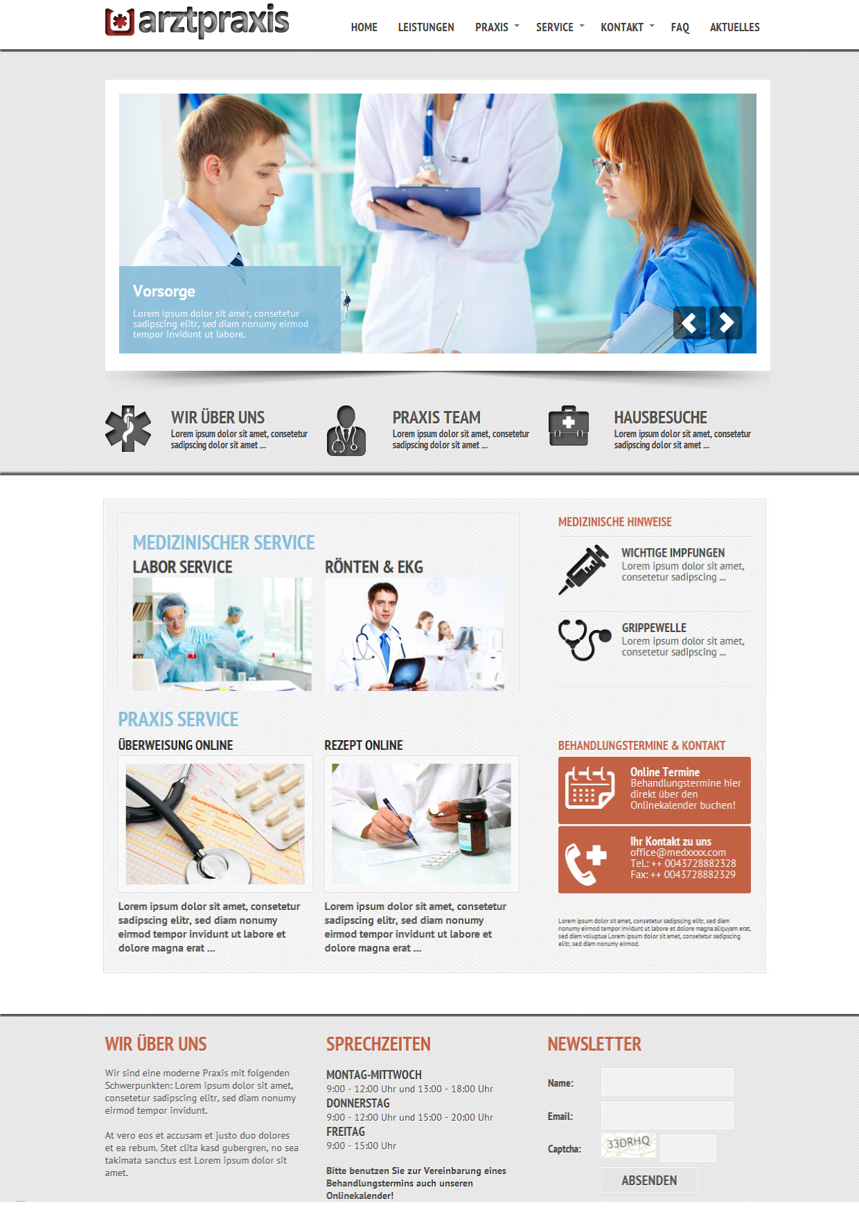 Ärzte bzw. einer Arzt Praxis sind Sie in wenigen Tagen mit einer professionell gestalteten Praxis Homepage online im Internet vertreten.