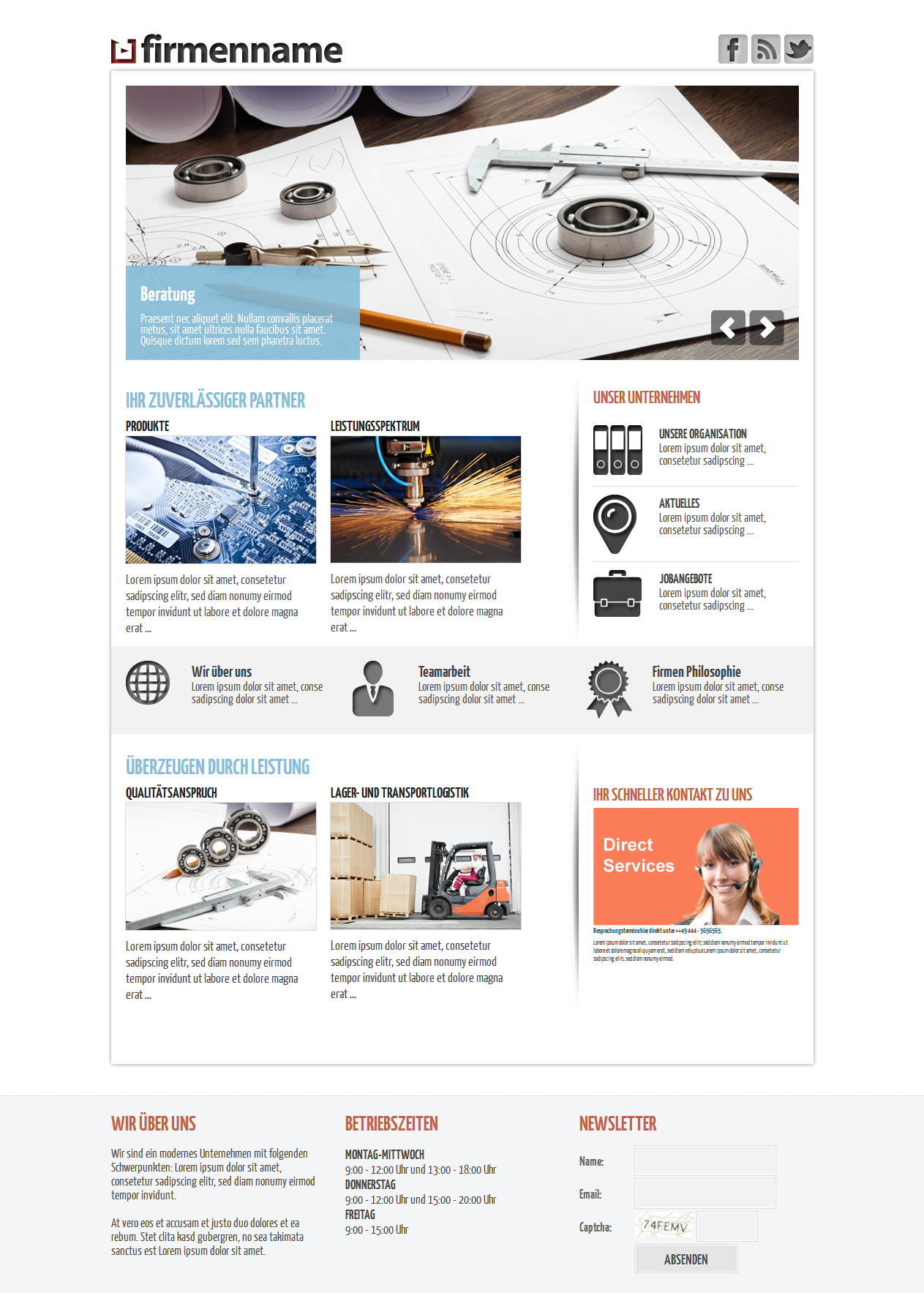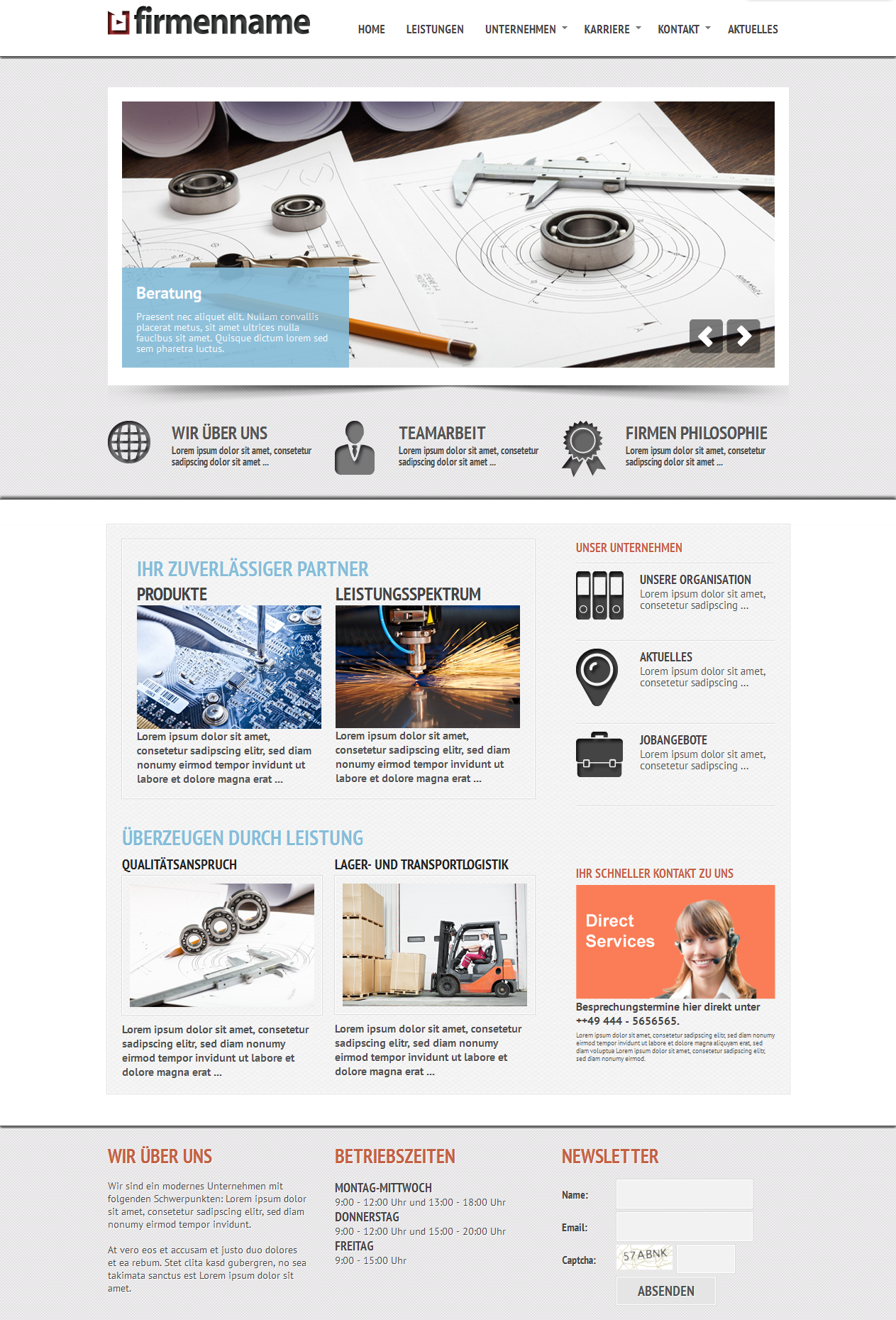 Darüber hinaus ist Ihre neue Firmen Homepage sehr einfach zu pflegen! Sie selbst oder Ihre Mitarbeiter können später ohne Programmier- kenntnisse Ihre Firmen Homepage