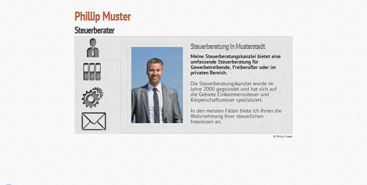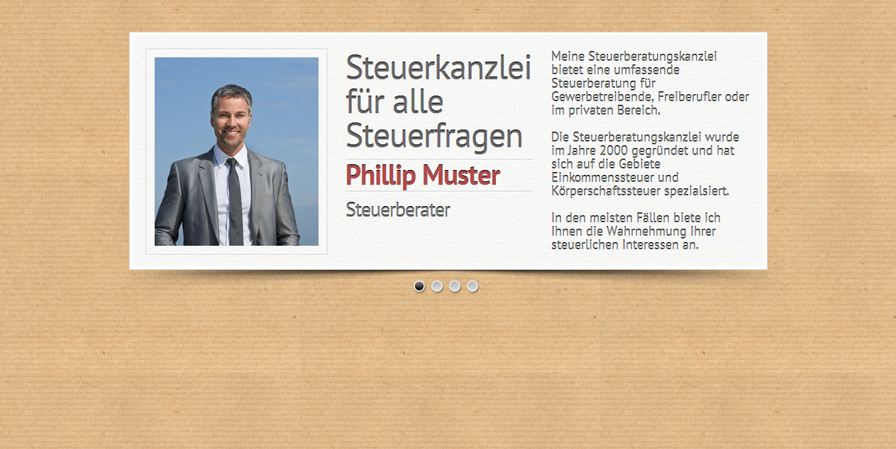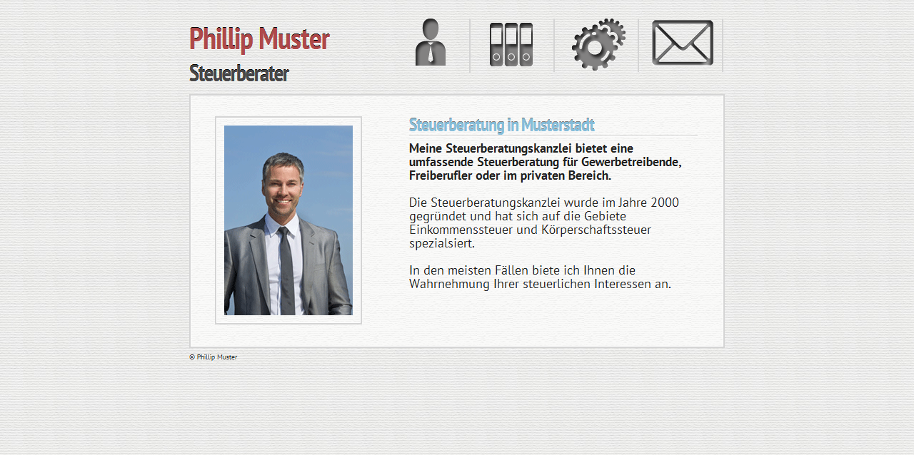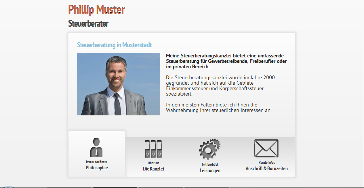 Starten Sie ins Internet mit einer eigenen Steuerberater Homepage. Mit unseren speziellen Branchenlösungen für Steuerberater bzw. einer Steuerkanzlei sind Sie in wenigen Tagen mit einer professionell gestalteten Steuerberater Homepage online im Internet vertreten. Darüber hinaus ist Ihre neue Steuerberater Homepage sehr einfach zu pflegen! Sie selbst oder Ihre Kanzlei Mitarbeiter können später ohne Programmierkenntnisse Ihre Steuerberater Homepage jederzeit aktualisieren und dazu neue Inhalte oder Bilder einfügen und und mit wenigen Klicks veröffentlichen.