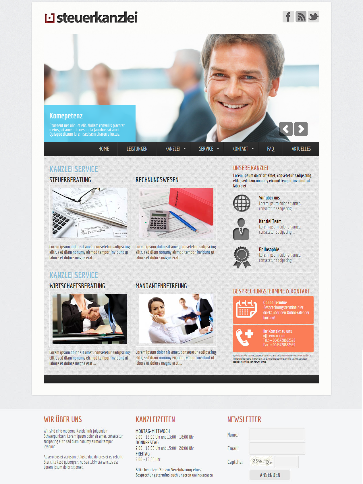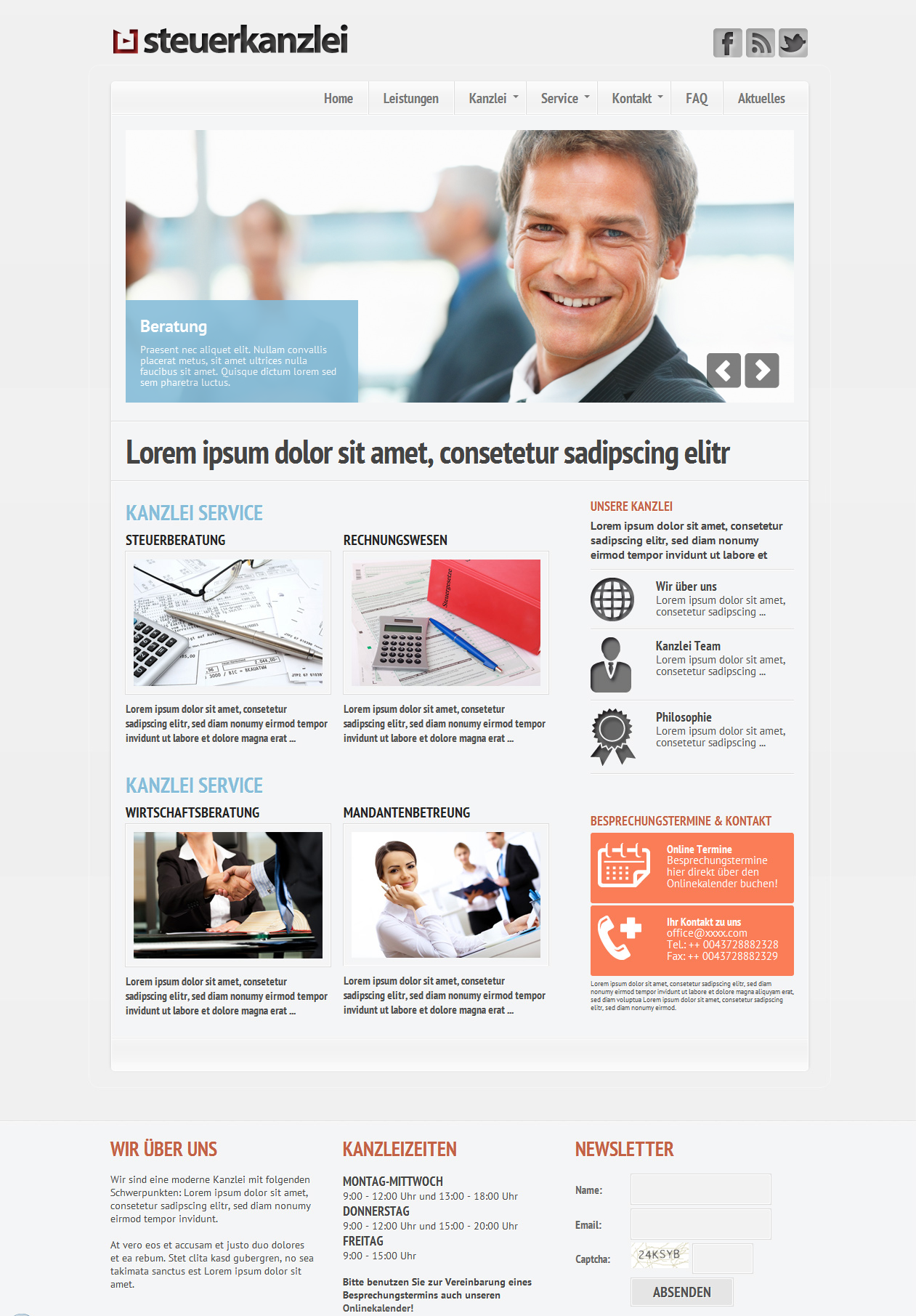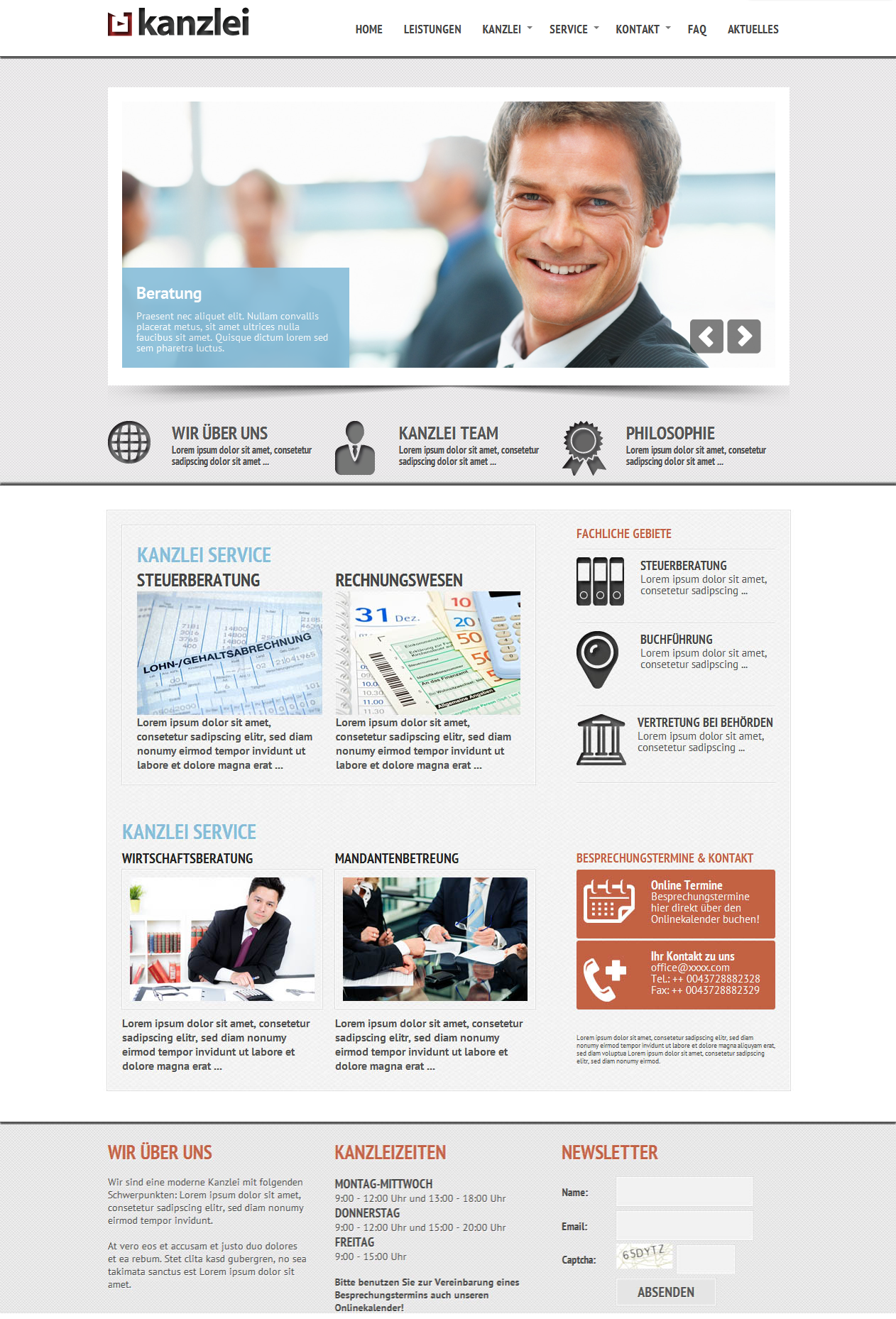 Starten Sie ins Internet mit einer eigenen Steuerberater Homepage. Mit unseren speziellen Branchenlösungen für Steuerberater bzw. einer Steuerkanzlei sind Sie in wenigen Tagen mit einer professionell gestalteten Steuerberater Homepage online im Internet vertreten. Darüber hinaus ist Ihre neue Steuerberater Homepage sehr einfach zu pflegen! Sie selbst oder Ihre Kanzlei Mitarbeiter können später ohne Programmierkenntnisse Ihre Steuerberater Homepage jederzeit aktualisieren und dazu neue Inhalte oder Bilder einfügen und und mit wenigen Klicks veröffentlichen.