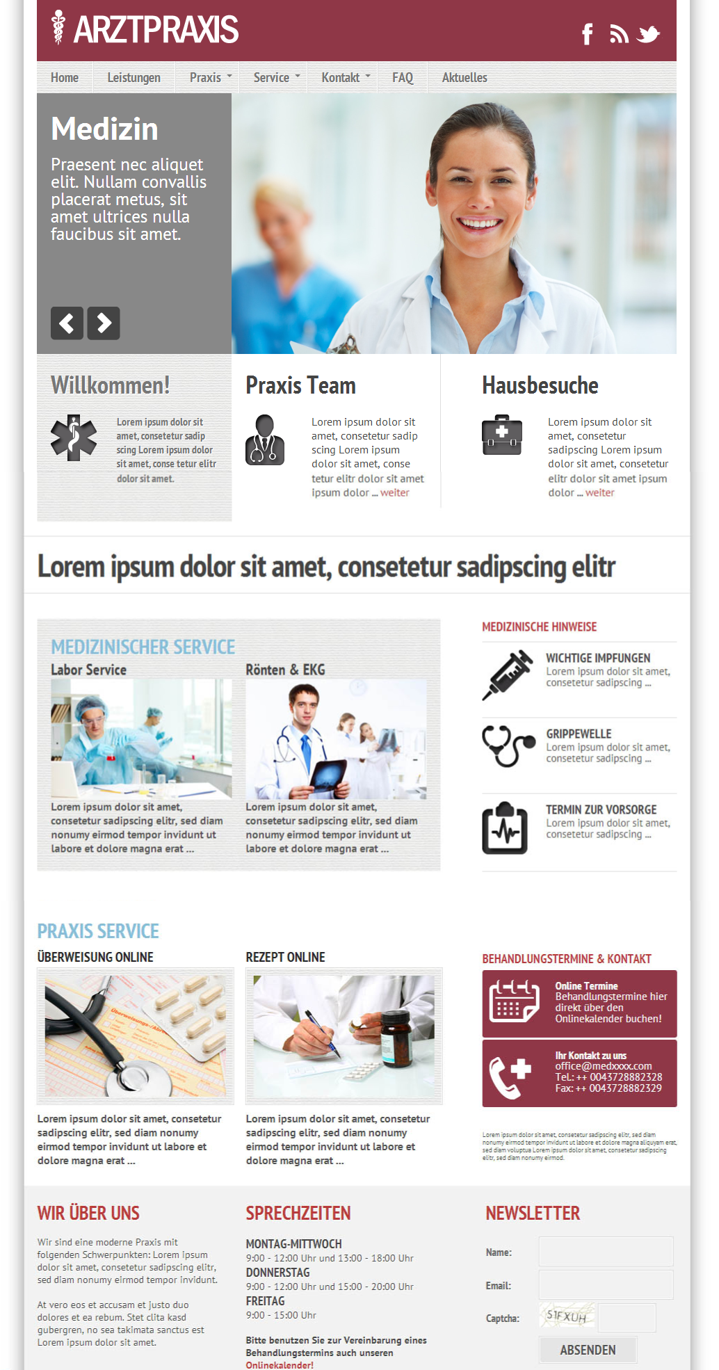 Ärzte bzw. einer Arzt Praxis sind Sie in wenigen Tagen mit einer professionell gestalteten Praxis Homepage online im Internet vertreten.
