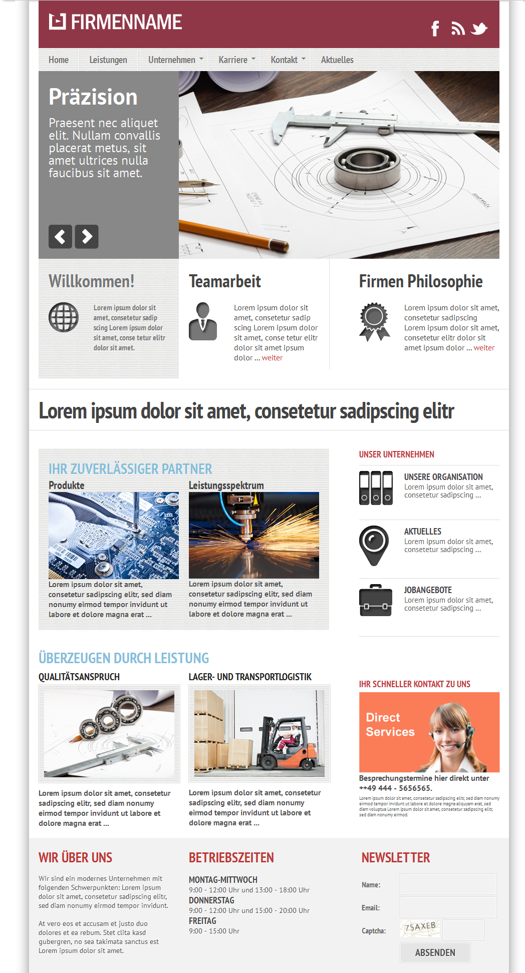Darüber hinaus ist Ihre neue Firmen Homepage sehr einfach zu pflegen! Sie selbst oder Ihre Mitarbeiter können später ohne Programmier- kenntnisse Ihre Firmen Homepage
