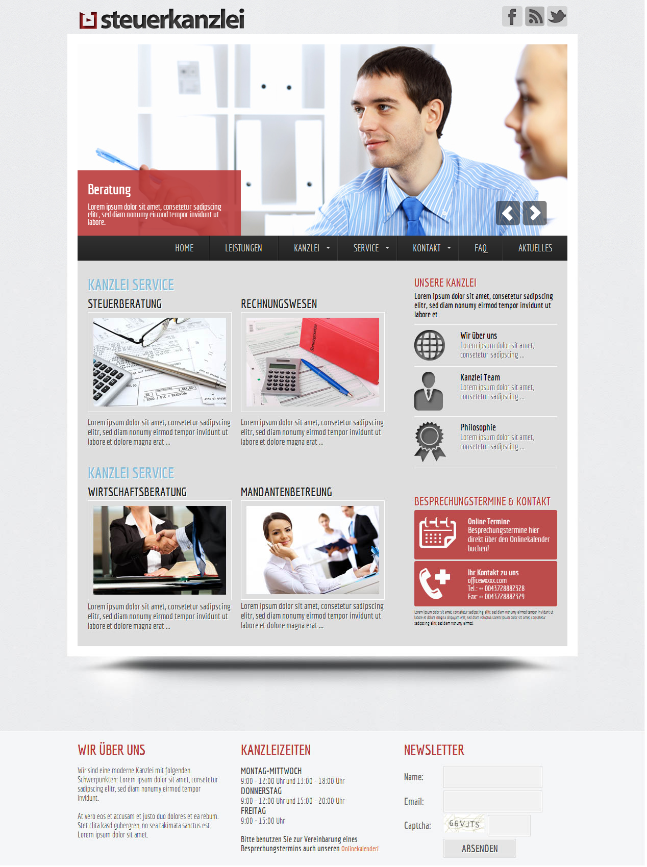 Starten Sie ins Internet mit einer eigenen Steuerberater Homepage. Mit unseren speziellen Branchenlösungen für Steuerberater bzw. einer Steuerkanzlei sind Sie in wenigen Tagen mit einer professionell gestalteten Steuerberater Homepage online im Internet vertreten. Darüber hinaus ist Ihre neue Steuerberater Homepage sehr einfach zu pflegen! Sie selbst oder Ihre Kanzlei Mitarbeiter können später ohne Programmierkenntnisse Ihre Steuerberater Homepage jederzeit aktualisieren und dazu neue Inhalte oder Bilder einfügen und und mit wenigen Klicks veröffentlichen.